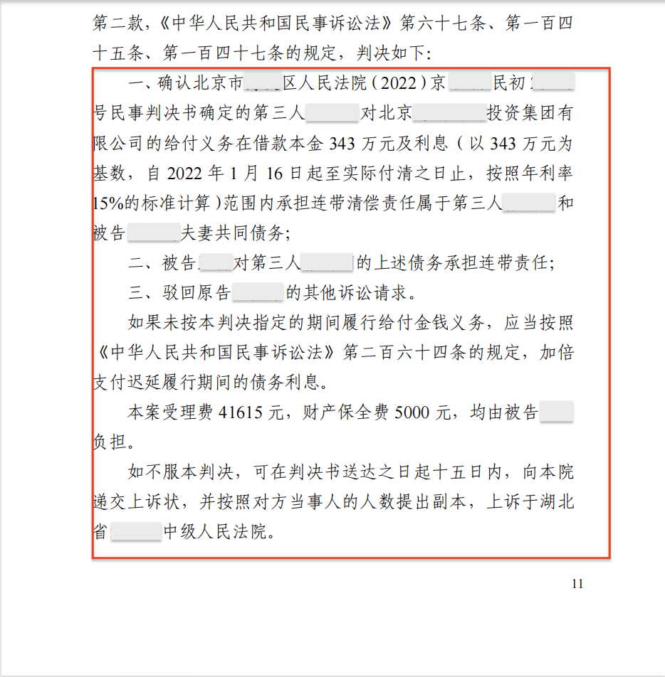 京讼律师代理民间借贷纠纷一案,成功认定担保债务为夫妻共同债务!